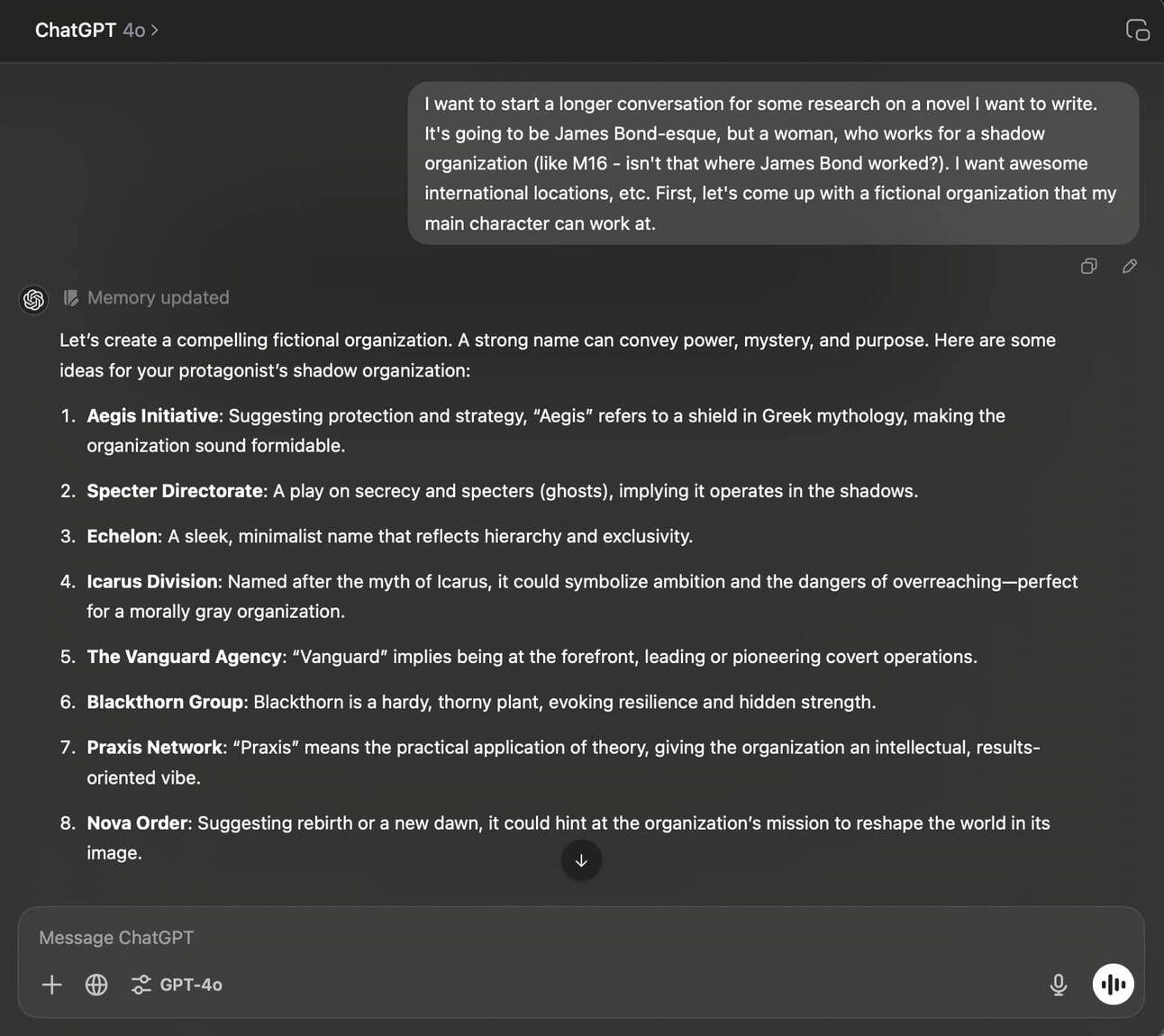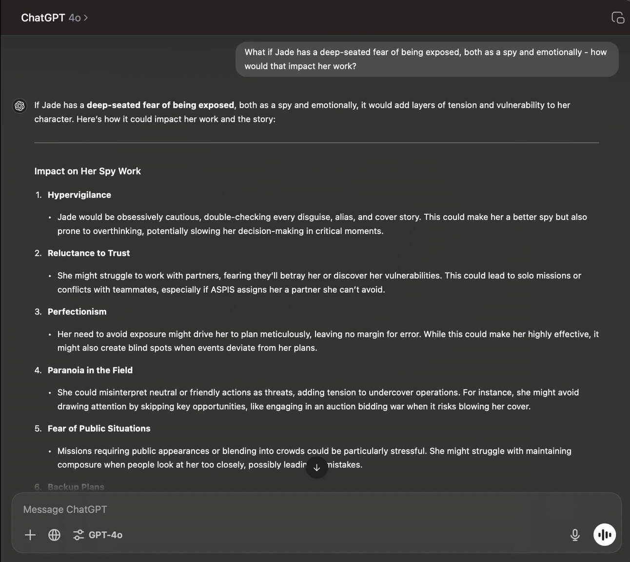 So, I’ll lean on ChatGPT a lot in the early days to get through these small decisions as quickly as possible so I can get back to what’s most important - the story.